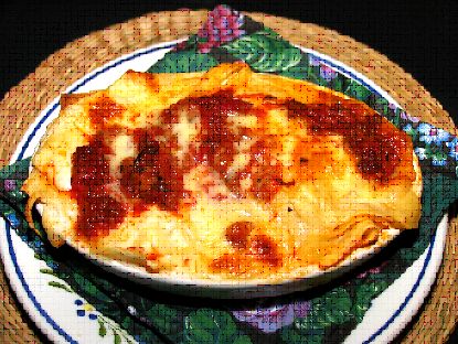 (自家製のパスタ・ベシャメル・ミートソースを層に、チーズを乗せて焼きました。)